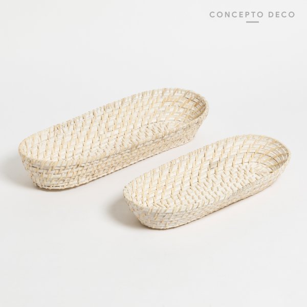 SETX2 BANDEJA RATTAN BLANCO G:43X7CM C:35,5X6CM