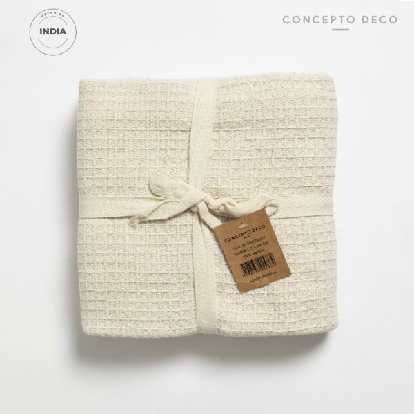 MANTA SOFÁ INDIA BALLERINA WAFFLE ALG CRUDO 125X150CM