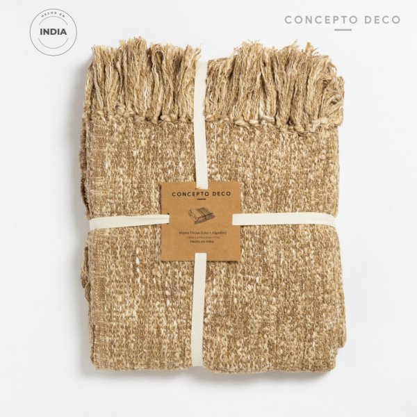 MANTA SOFÁ INDIA KERALA ALGODÓN Y LINO BEIGE 130X170CM